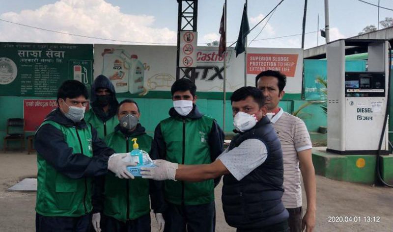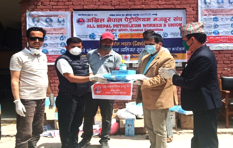 पेट्रलियम मजदुरका केन्द्रीय अध्यक्ष शिव पोख्रेलले सो सुरक्षा सामाग्री काठमाडौं जिल्ला कमिटीअन्तर्गत रहेका ४ वटै इलाका अध्यक्षहरूलाई ६० प्याकेट (६०००) थान ग्लोव्स, ६० थान सेनिटाइजर, २००० थान माक्स काठमाडौं जिल्लामा कार्यरत पेट्रोलियम मजदुरहरूलाई वितरण गर्ने गरी हस्तान्तरण गरे ।