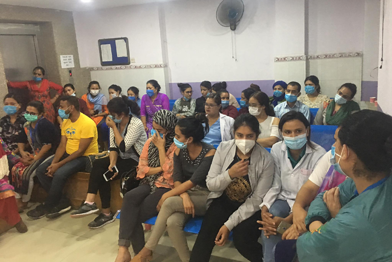 “चैत्र महिनादेखि तलब नपाएको, नौ बुँदे माग डेढ वर्षदेखि सुनुवाई नभएको, योगदानमा आधारित सामाजिक सुरक्षा कोषमा जान नचाहेको, तलब सुबिधा रू. ८ देखि १० हजार मात्रै रहेको, बन्दाबन्दीमा पनि यातायात सुबिधा नभएको, स्थायी कर्मचारीको संचय कोष काटिएको तर कोषमा रकम जम्मा नगरिएको, ग्रेड रोक्का गरिएको, कोरोना महामारीमा पनि स्वास्थ्य सुरक्षा सामग्री पर्याप्त नभएको, बिरामी ल्याउँदा पठाउँदा समेत कमिशन खेल भएको, श्रमिकहरुलाई डर, धम्की दिने गरेको, २० वर्ष काम गरेका श्रमिकलाई पनि १५–१६ हजारभन्दा बढी तलब सुविधा नभएको साथै श्रम ऐनको समेत पालना नभएको” विषयमा आज श्रमिकहरु र व्यवस्थापन बीच भएको छलफल भएको थियो ।