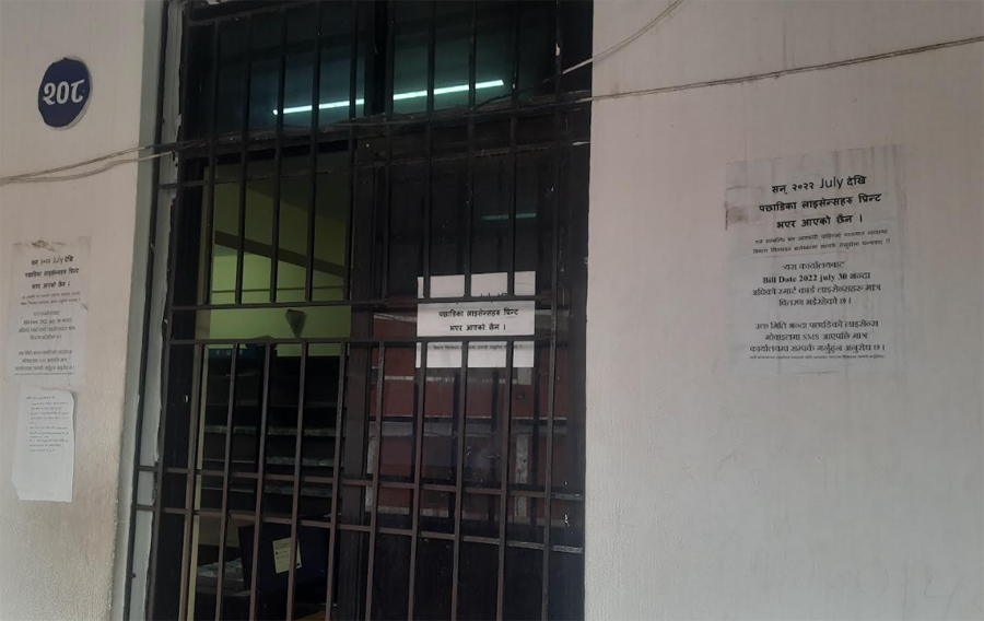 “यस कार्यालयबाट बील मिति २०२२ जुलाई ३० भन्दा अघिको स्मार्ट कार्ड लाइसेन्सहरू मात्र बितरण गरिएको छ,” भित्तामा टाँस गरेको सूचनामा भनिएको छ, “उक्त मितिभन्दा पछाडिको लाइसेन्स मोवाइलमा एसएमएस आएपछि मात्र कार्यालयमा सम्पर्क गर्नुहुन अनुरोध छ ।”