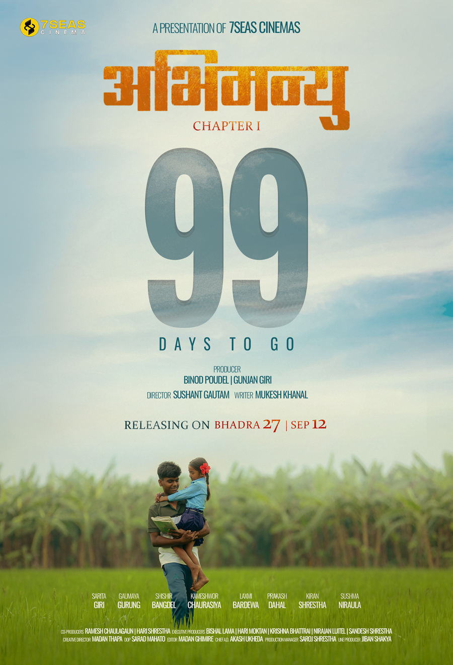 पोस्टरमा उल्लेख भएअनुसार अब यो सिनेमा रिलिज हुन ९९ दिन बाँकी छ । ‘अभिमन्यु’ आगामी भदौ २७ गते रिलिज हुँदैछ ।