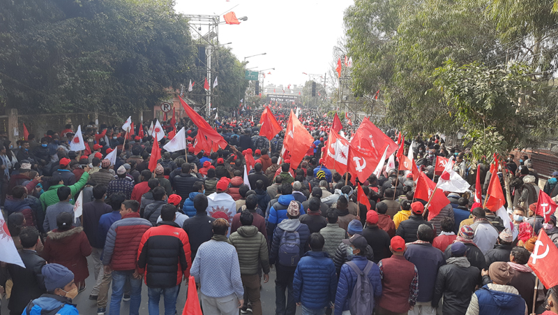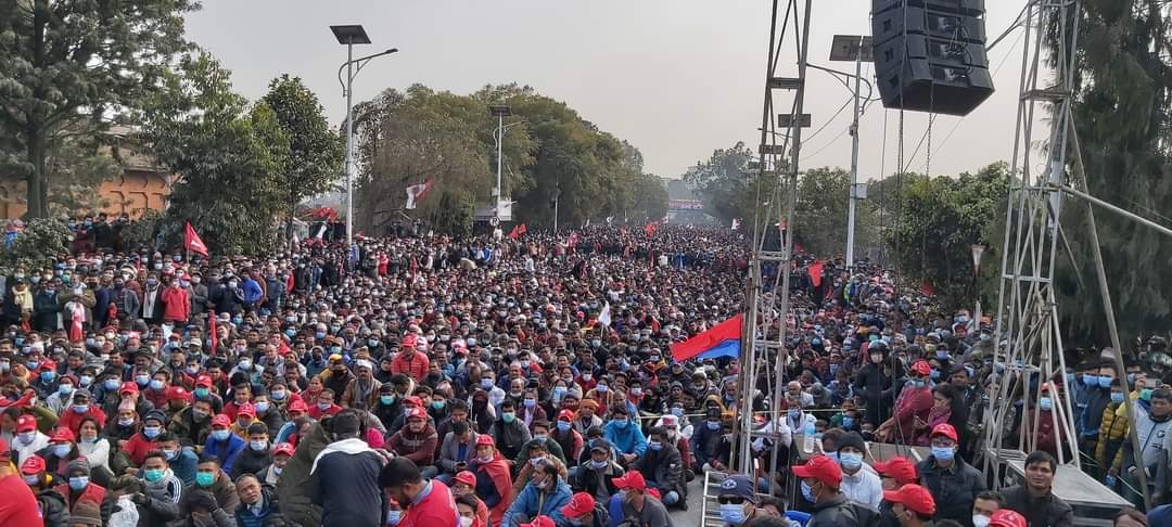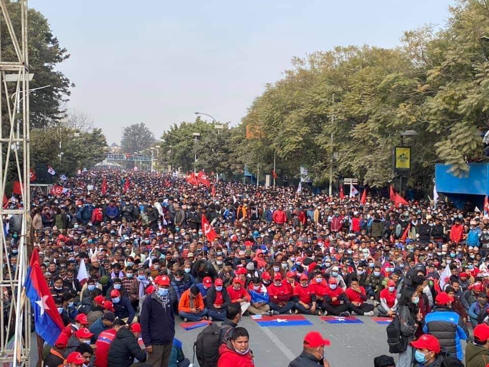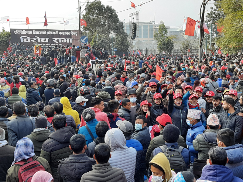 प्रधानमन्त्री केपी शर्मा ओलीले गत पुस ५ गते संसद विघटन गरेपछि उक्त कदमलाई संवैधानिक ‘कू’ भन्दै नेपाल कम्युनिष्ट पार्टी (नेकपा)को केन्द्रीय संघर्ष समितिको आयोजना र नेकपाका अध्यक्षद्वय पुष्पकमल दाहाल ‘प्रचण्ड’ र माधव कुमार नेपालको नेतृत्वमा शुक्रबार राजधानीमा विशाल जनप्रदर्शन तथा विरोध सभा कार्यक्रम सम्पन्न भएको हो ।