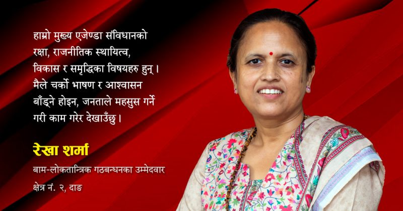 भाषण गरेर होइन, जनतालाई अनुभूति हुने गरी काम गर्छु – रेखा शर्मा, प्रतिनिधि सभा सदस्य उम्मेदवार
