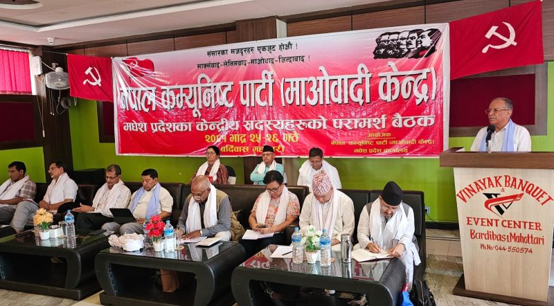 २५ भदौ ०८१, महोत्तरी । नेकपा माओवादी केन्द्र मधेश प्रदेशको परामर्श बैठक बर्दिबासमा सुरु भएको छ ।