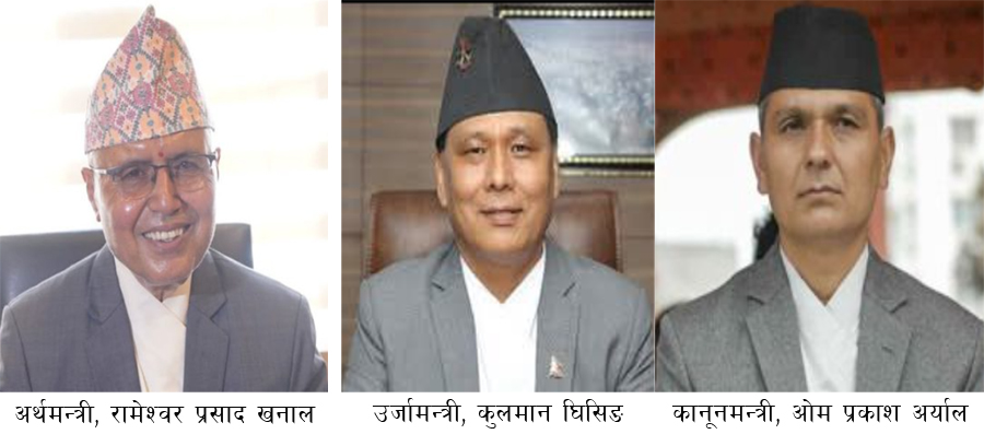मन्त्रिपरिषद् बिस्तार : खनाल, घिसिङ र अर्याल बने क्रमशः अर्थ, उर्जा र कानून मन्त्री