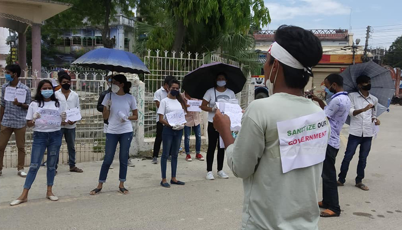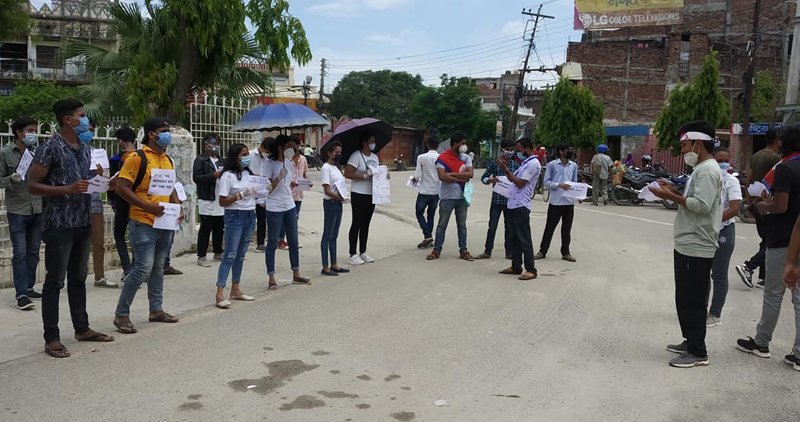अव्यवस्थित क्वारेन्टाइन बिरुद्ध यूवाहरुको प्रदर्शन