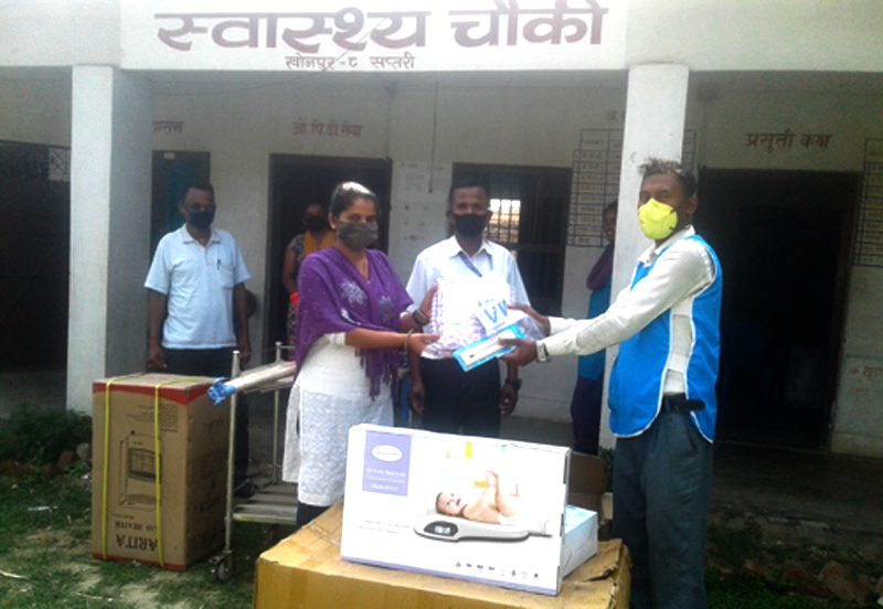 सबल नेपाल सप्तरीले खडक नगरपालिकामा रहेका प्राथमिक स्वास्थ्य केन्द्र (प्रसुतिगृह) कल्याणपुर, खोजपुर र बनरझुला र सुरुङ्गा नगरपालिका अन्र्तगतका प्राथमिक स्वास्थ्य केन्द्र (प्रसुतिगृह) कडरबोना र पिप्रापश्चिममा वेवीवार्मर, पि.पि.ई सेट, सेनिटाइजर, ग्लोव, माक्स, गमवुट, के.एम.सी., र्यापर, रुम थर्मोमिटर, ग्यास सेट, रुम हिटर, वेवी वेटिङ्ग मेसिन, आईभी स्टेन्ड, मेडिसिन ट्रली, वेवी व्याग, लगायतका सामग्री प्रदान गरिएको बताएको छ ।