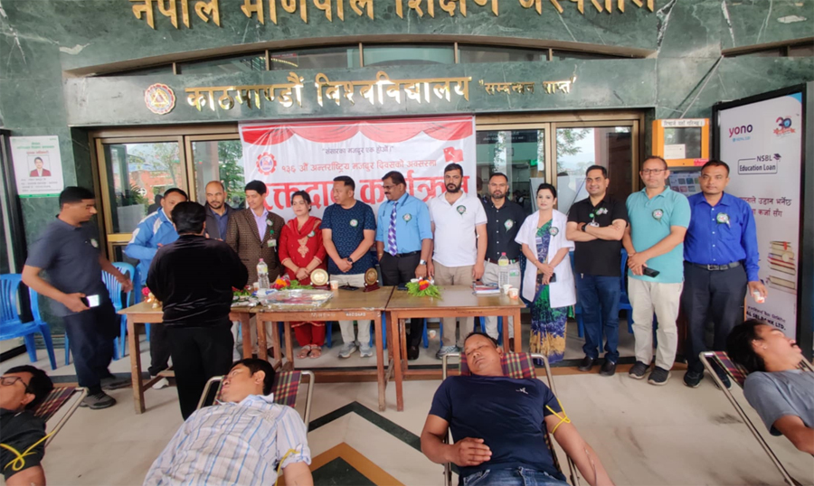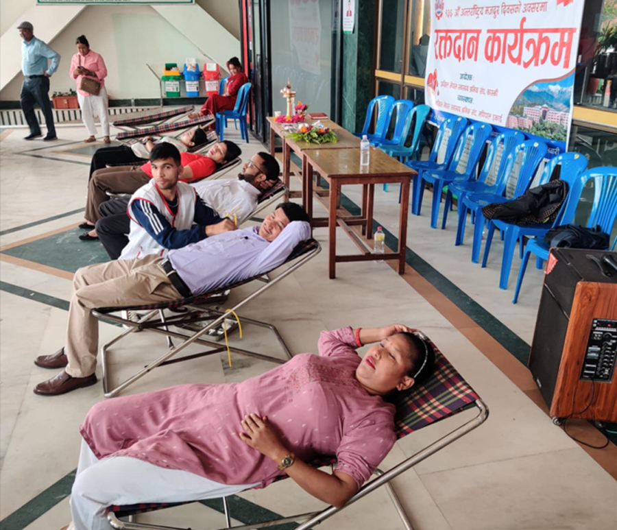 १६ बैशाख ०८२, काठमाडौं । अखिल नेपाल स्वास्थ्य श्रमिक संघ कास्कीले १३६औं अन्तर्राष्ट्रिय श्रमिक दिवसको पूर्वसंघारमा सोमबार मणिपाल अस्पतालमा रक्तदान कार्यक्रम सम्पन्न गरेको छ ।