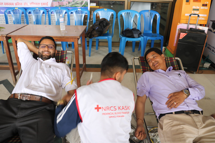 अखिल नेपाल स्वास्थ्य श्रमिक संघ कास्कीको आयोजना साथै मणिपाल मूल इकाईको संयोजकत्वमा सोमबार सम्पन्न रक्तदान कार्यक्रममा ८१ युनिट रगत संकलन भएको हो ।